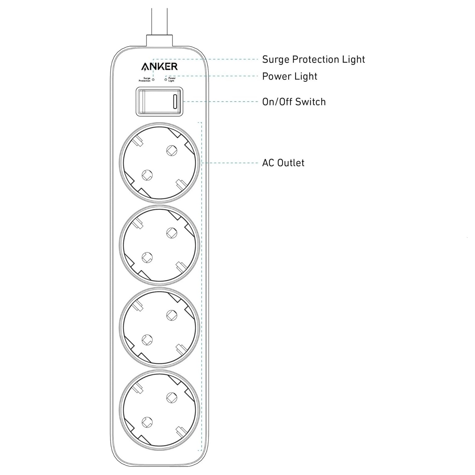 ANKER Power Strip with Surge Protection ,Extension Lead with 4 Wall Outlets