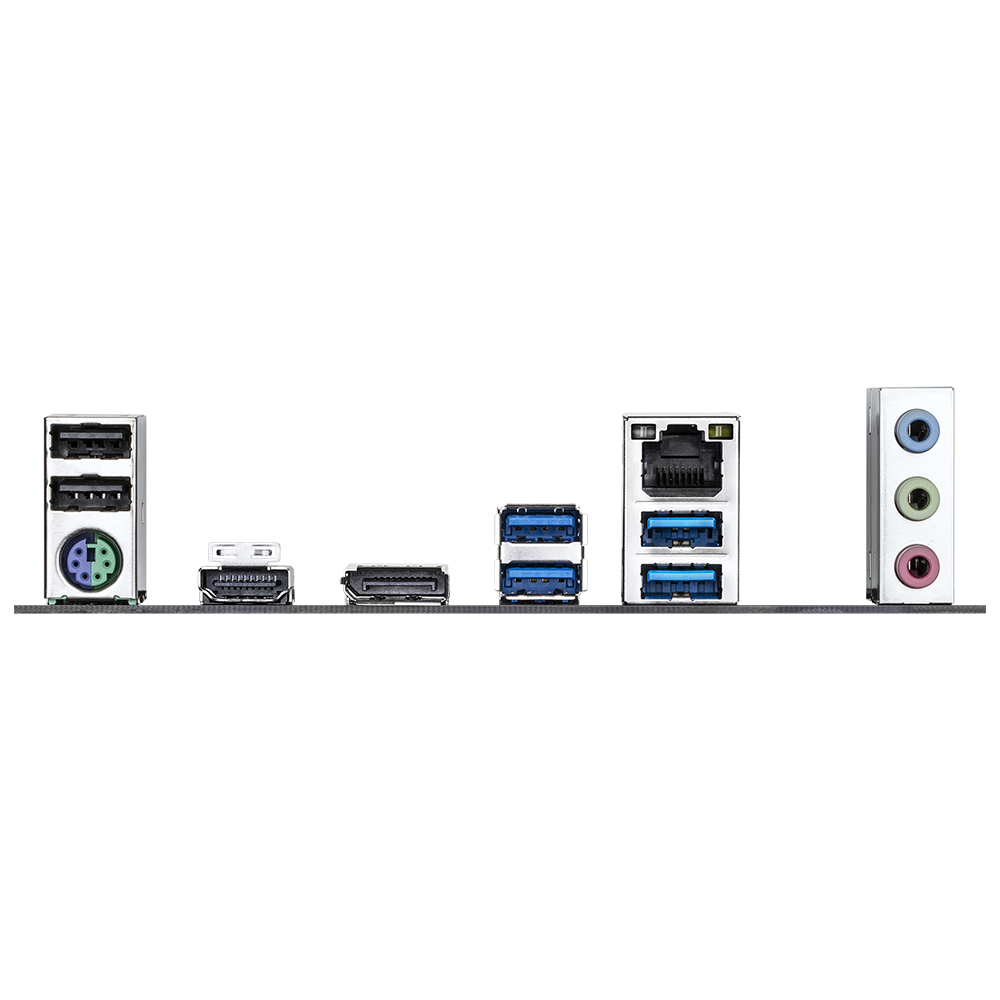 | Back I/O Ports | 2 x USB 2.0/1.1 ports 1 x PS/2 keyboard/mouse port 1 x HDMI port (Note) 1 x DisplayPort (Note) 4 x USB 3.2 Gen 1 ports 1 x RJ-45 port 3 x audio jacks |