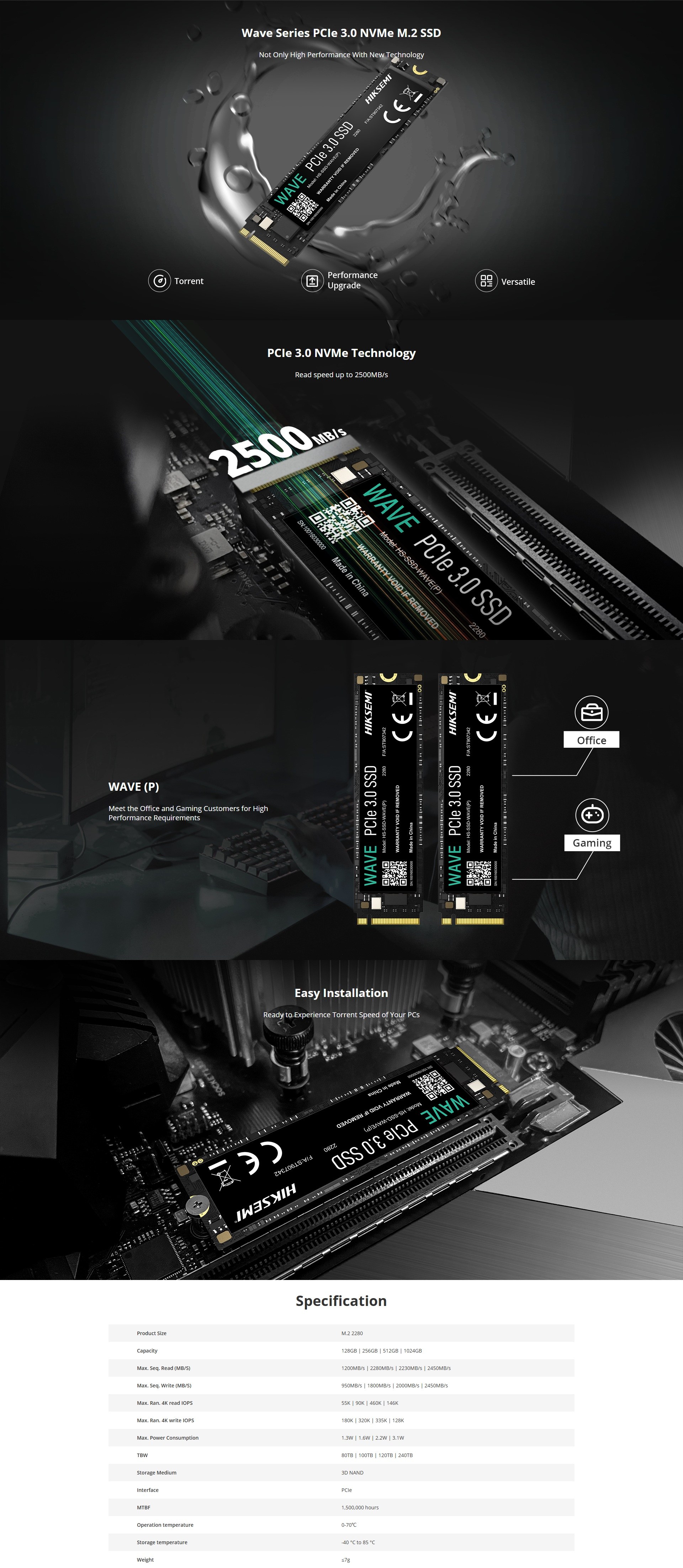 HIKSEMI Wave 256GB M.2 PCIe 3.0 NVMe 3D NAND Internal Solid State Drive SSD