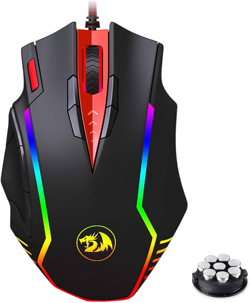 Redragon SAMSARA M902-RGB Gaming Mouse with RGB Color Backlit, 12,400 DPI Adjustable, High-Precision Sensor, 13 Programmable Buttons, 2.4gx8 pieces weight tuning set