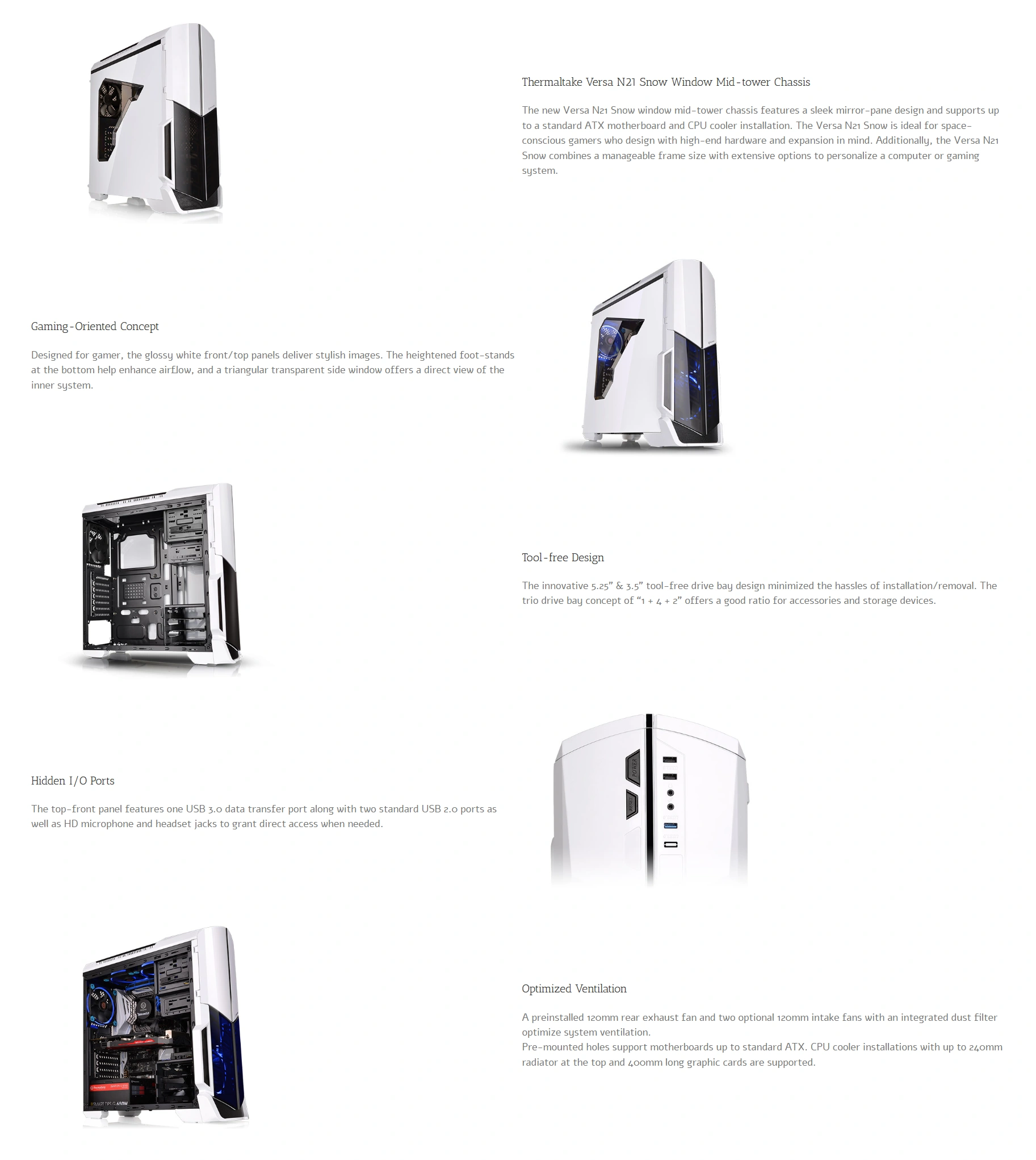 THERMALTAKE Versa N21 Snow with 2Xfan Mid Tower Case