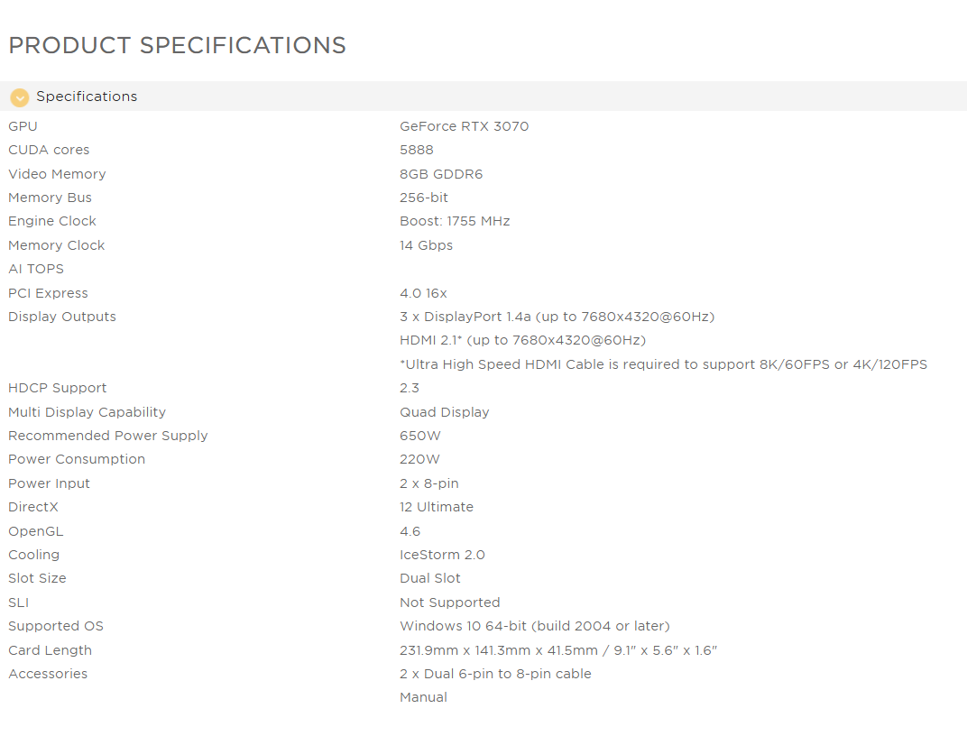 ZOTAC GAMING RTX 3070 TWIN EDGE OC 8GB GDDR6 NVIDIA Graphics Card